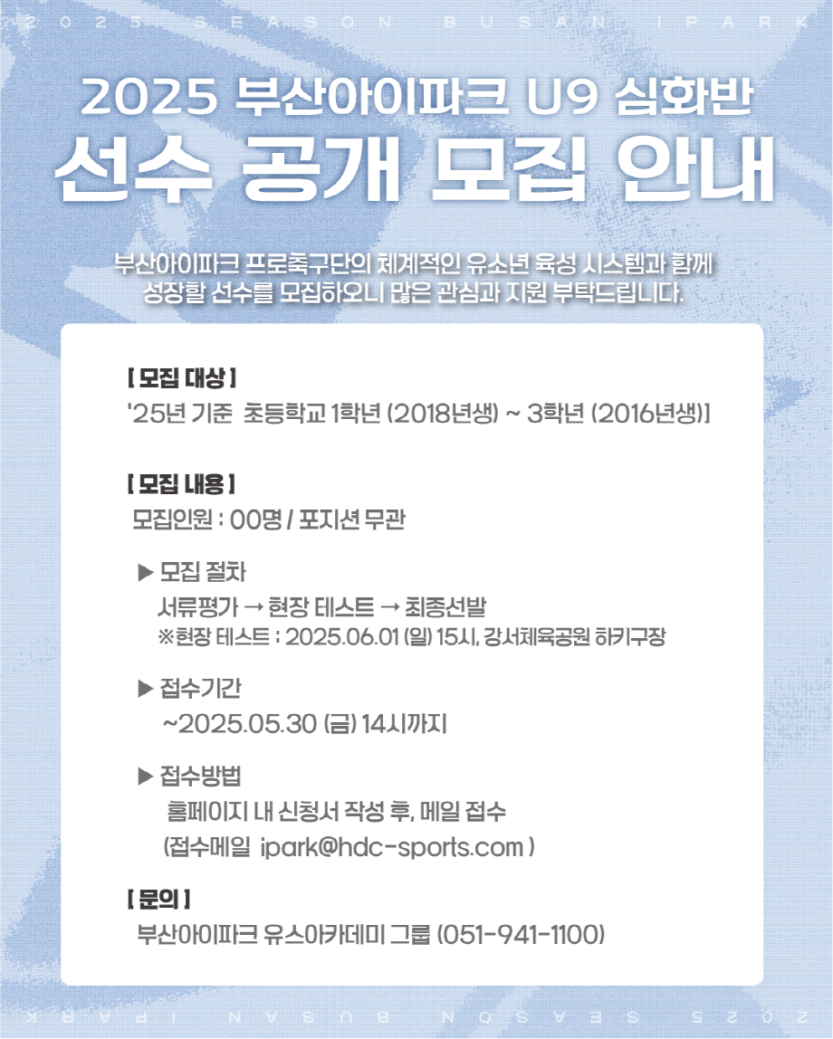 2025 ºÎ»ê¾ÆÀÌÆÄÅ© U9 ¼±¼ö °ø°³ ¸ðÁý ¾È³»