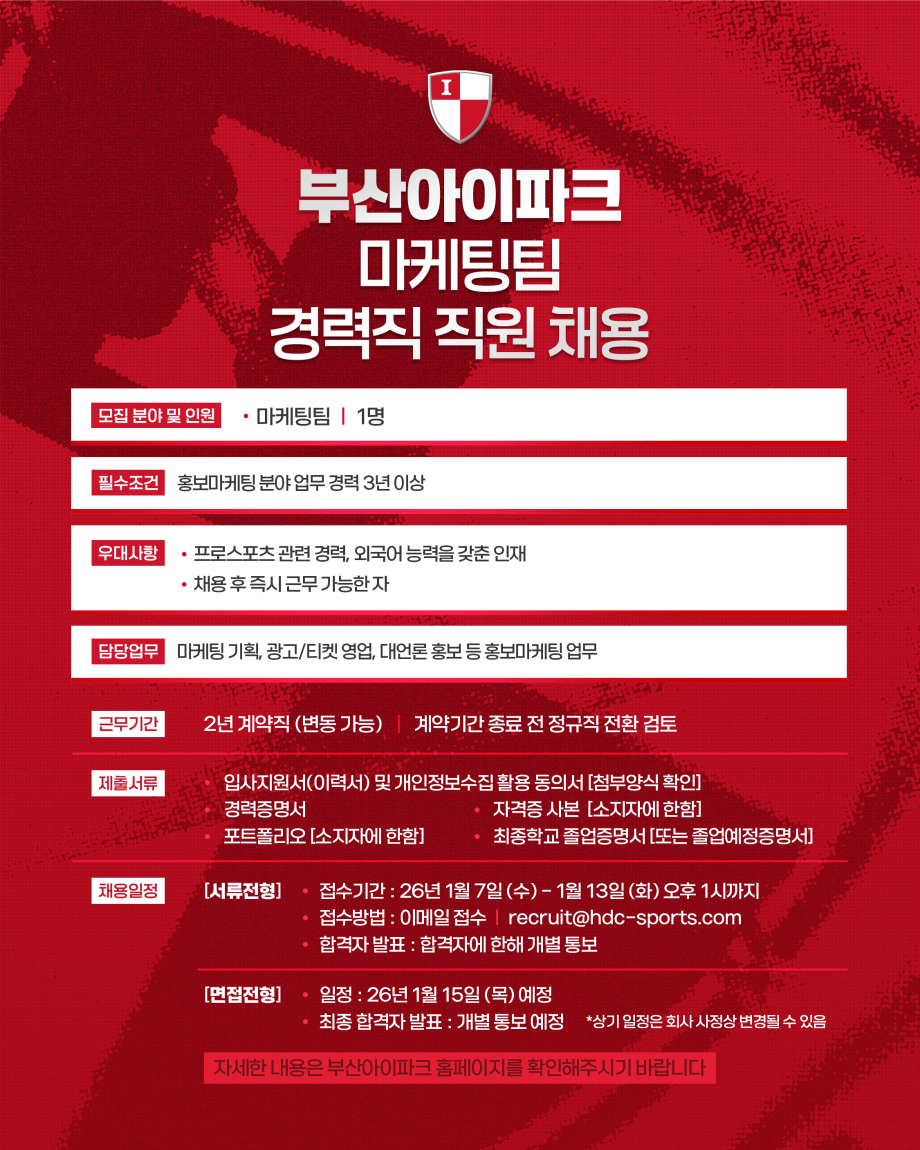- Á¢ ¼ö ¹æ ¹ý : À̸ÞÀÏÁ¢¼ö(recruit@hdc-sports.com)